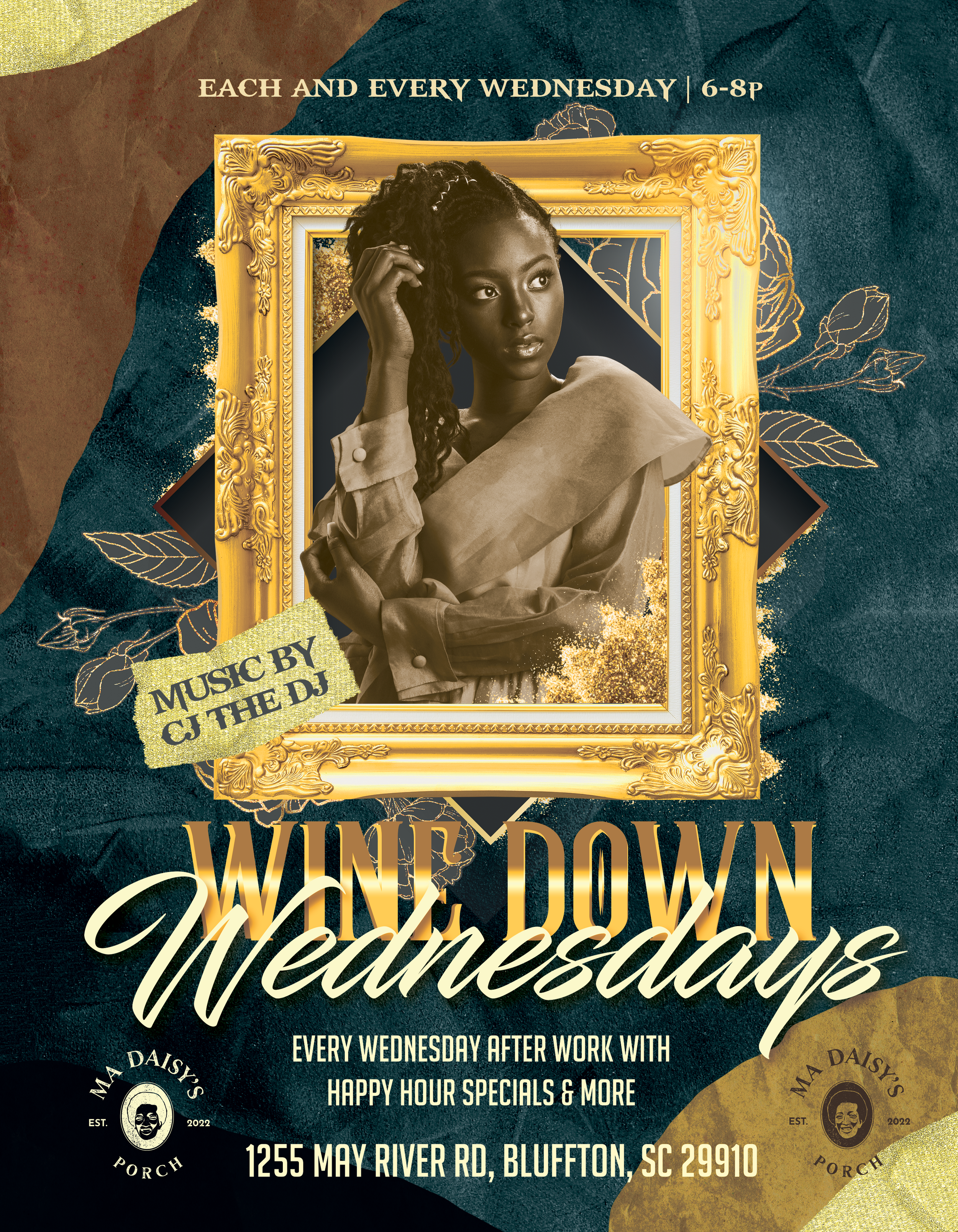 Wednesday’s after work wind down with some wine, food, and good music at Ma Daisy’s Porch in Bluffton, SC.