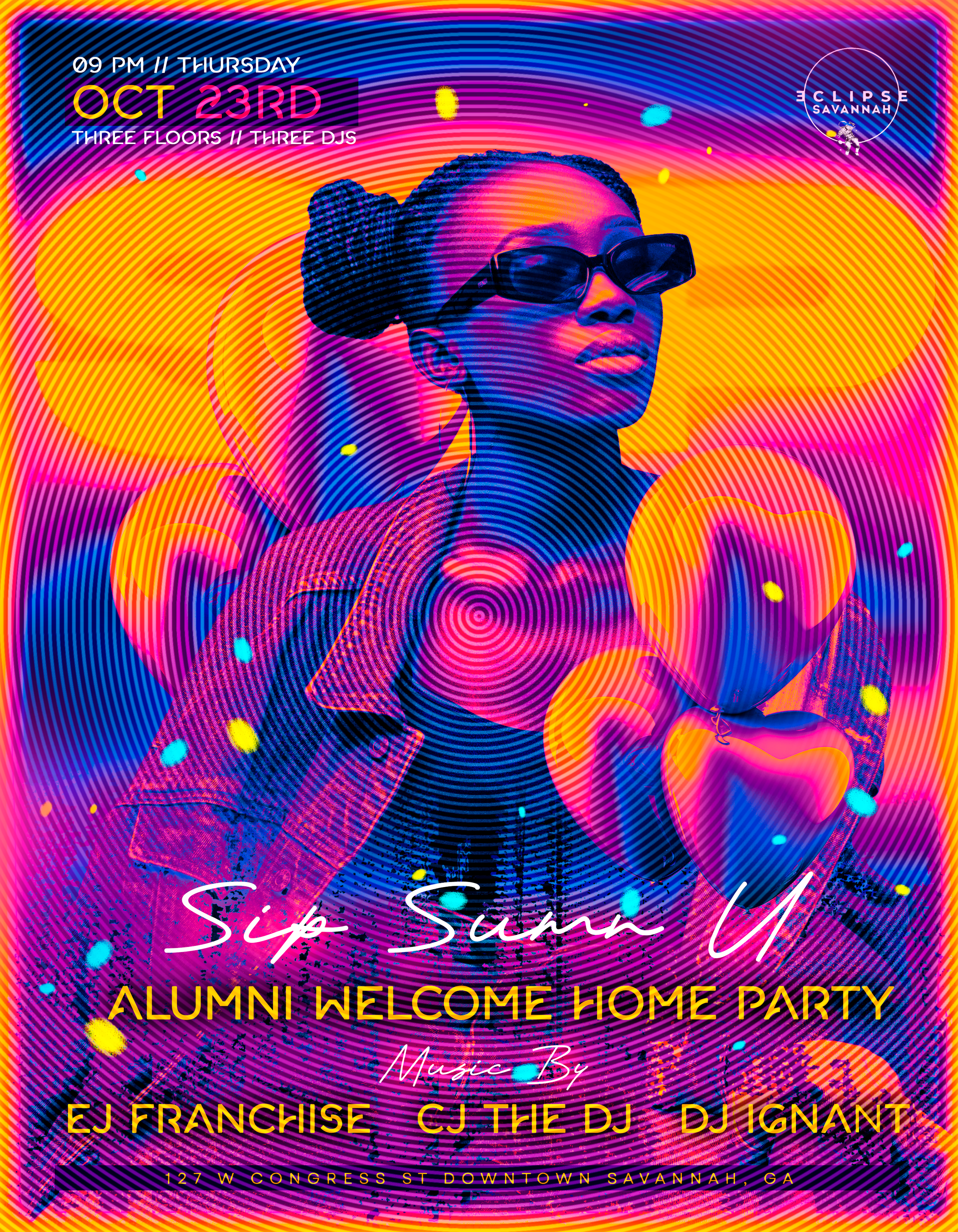 SSU Homecoming isn’t Official until the alumni touch down! Especially the alum of “Sip Sumn U’. The alumni kickoff party of the weekend is back at Eclipse….3 floors…..3 djs….