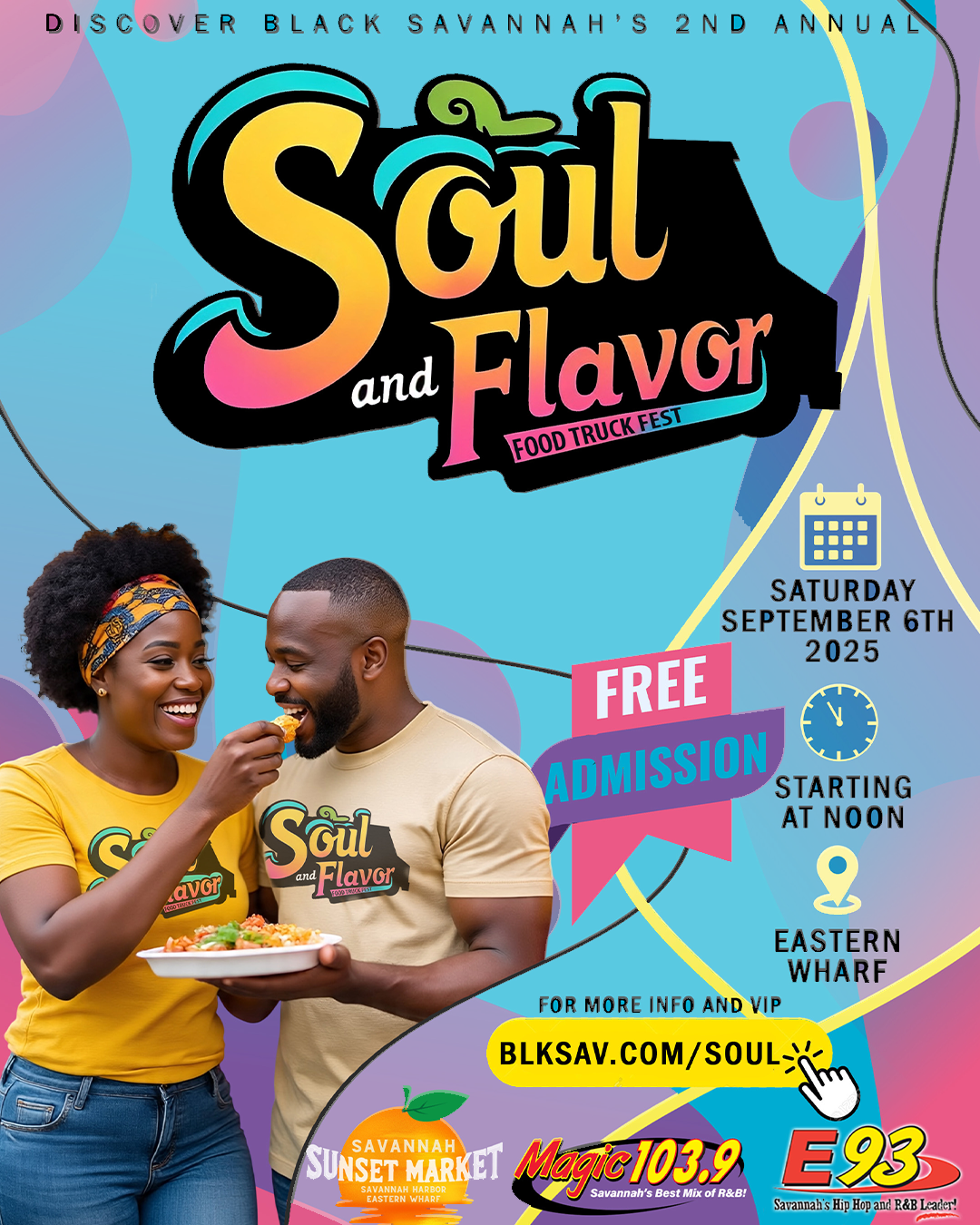 Join Discover Black Savannah for the 2nd Annual Soul & Flavor Food Truck Fest, a vibrant celebration of culture, cuisine, and community! This event brings together the best local and regional food trucks, offering delicious soul food and Gullah Geechee culinary delights. there will be performances from calvin j ford, bak bond, port savant, & more!